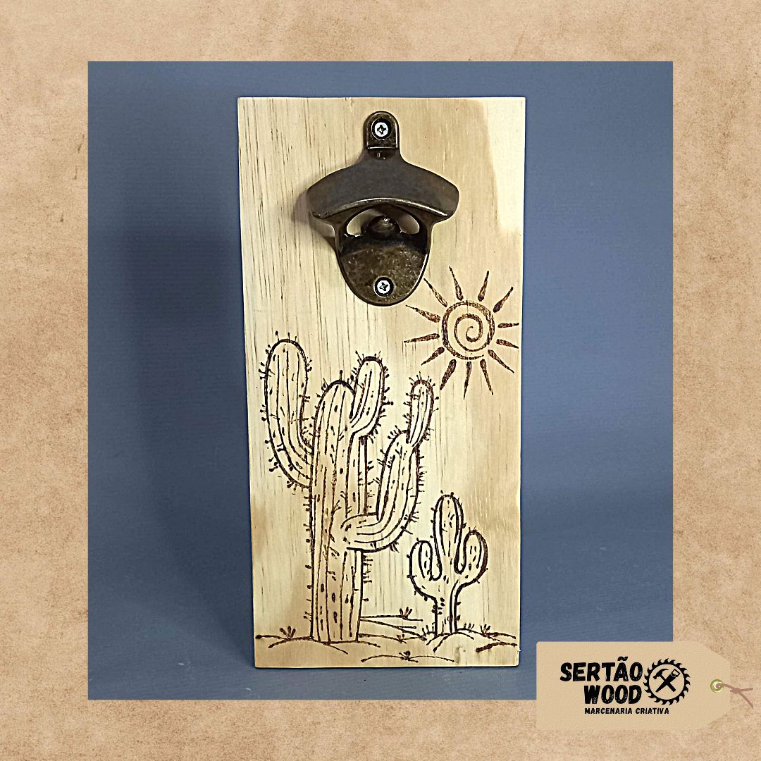 Abridor Magnético de Parede em compensado naval. Dimensões 12 X 25 cm. Modelo Cacto