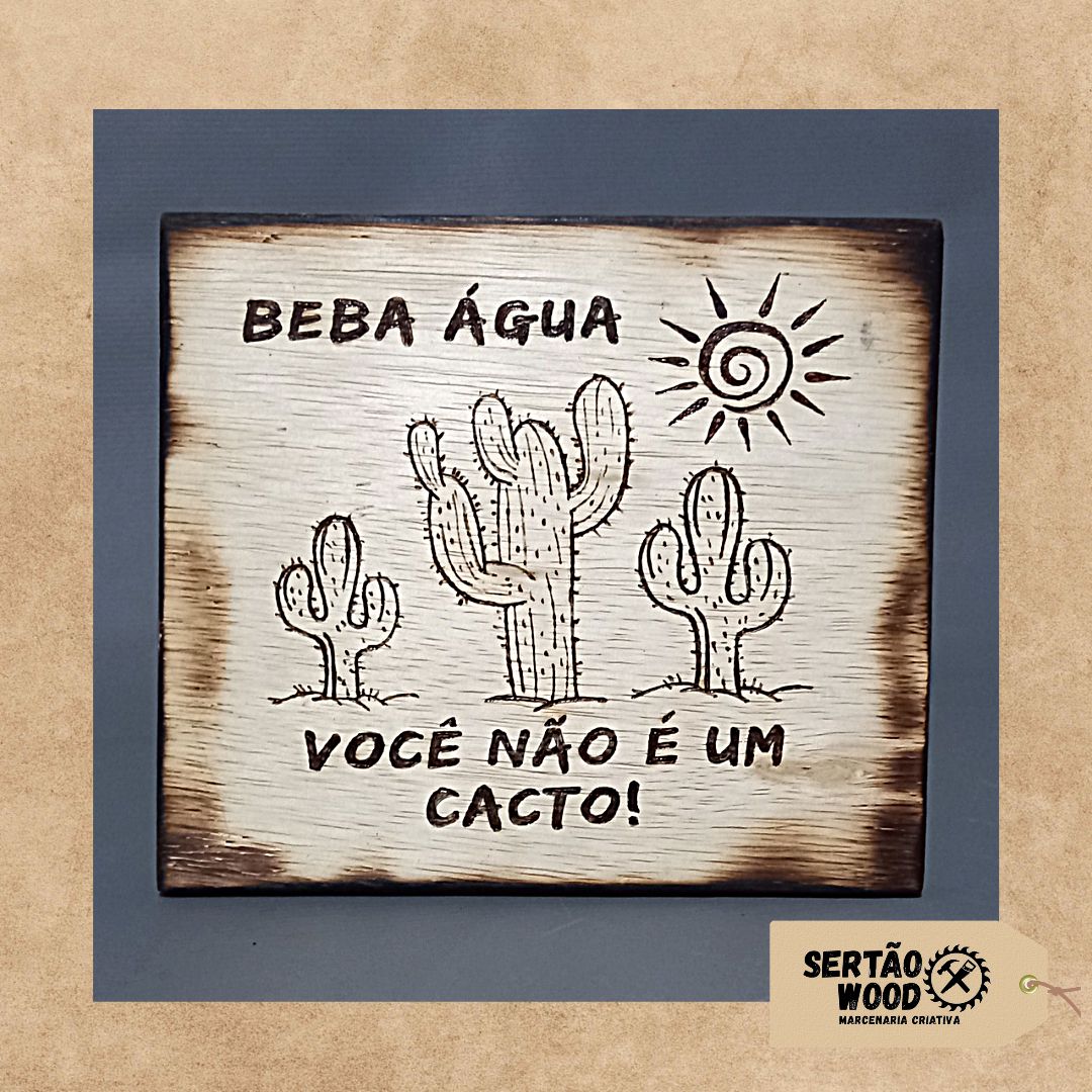 Placa Decorativa em compensado. Dimensões 20x22cm. Modelo Beba água, você não éum cacto.