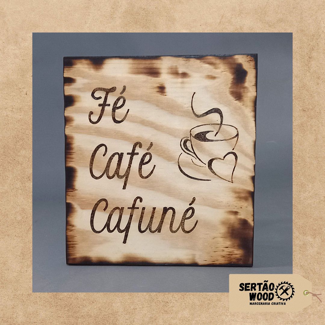 Placa Decorativa em compensado. Dimensões 20x22cm. Modelo Fé Café.