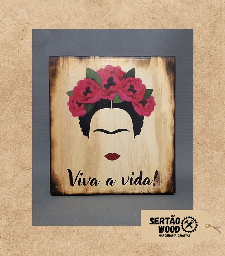 Placa Decorativa em compensado. Dimensões 20x22cm. Modelo Frida.